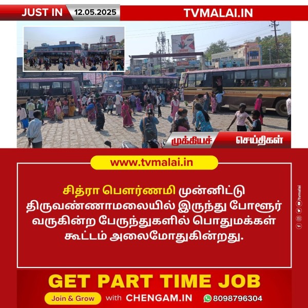 சித்ரா பௌர்ணமி முன்னிட்டு திருவண்ணாமலையில் இருந்து போளூர் வருகின்ற பேருந்துகளில் பொதுமக்கள் கூட்டம் அலைமோதுகின்றது.