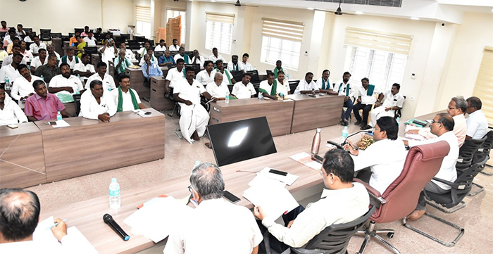 திருவண்ணாமலை மாவட்ட ஆட்சித்தலைவர் அலுவலக பெருந்திட்ட வளாகத்தில் உள்ள ஒருங்கிணைந்த ஊரக வளர்ச்சி முகமை அலுவலக கூட்டரங்கில், தனியார் அறுவடை இயந்திரங்களுக்கான வாடகை முறைப்படுத்துதல் தொடர்பாக மாவட்ட ஆட்சித்தலைவர் திரு. முருகேஷ் அவர்கள் தலைமையில் நேற்று 23.06.2023 முன்னோடி விவசாயிகள், தனியார் அறுவடை இயந்திரம் உரிமையாளர்கள், வேளாண்மை மற்றும் பிற துறை அலுவலர்கள் உள்ளடக்கிய முத்தரப்பு கூட்டம் நடைபெற்றது.